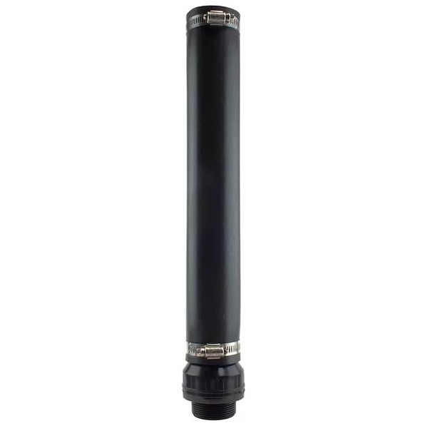 - Comes fully assembled with check valve and 14 inch discharge pipe and 2 hose clamps