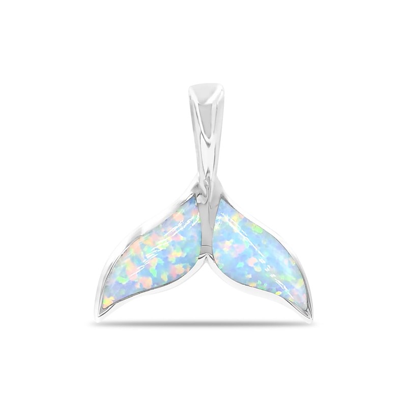 - This beautiful Whale-Tail themed Pendant features Cultured Opal inlaid by hand and is approximately .75 inches tall by .70 inches wide.