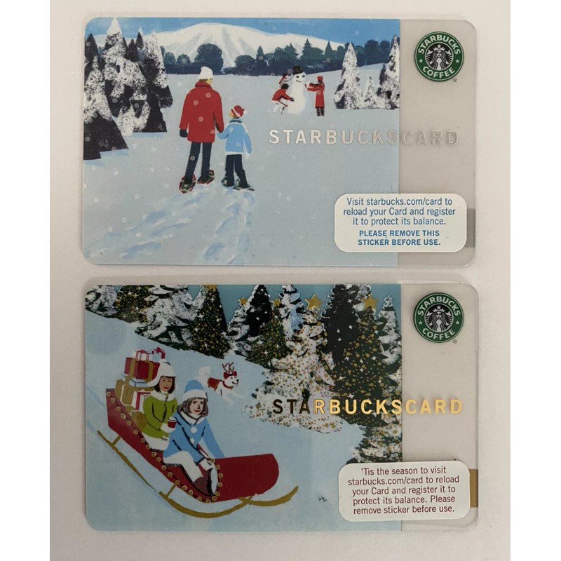 2 - 2007 Starbucks Holiday Gift Cards, Winter Walk & Rush Delivery, No Value, Mint Condition