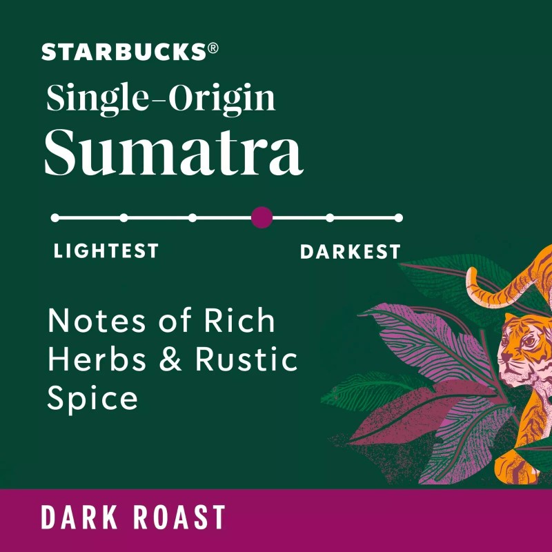• STARBUCKS SINGLE-ORIGIN SUMATRA COFFEE—This full-bodied single-origin dark coffee has notes of rich herbs and rustic spice