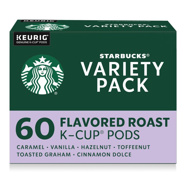 Starbucks K-Cup Coffee Pods, Flavored Hot or Iced Coffee, Variety Pack, 60 Keurig Pods