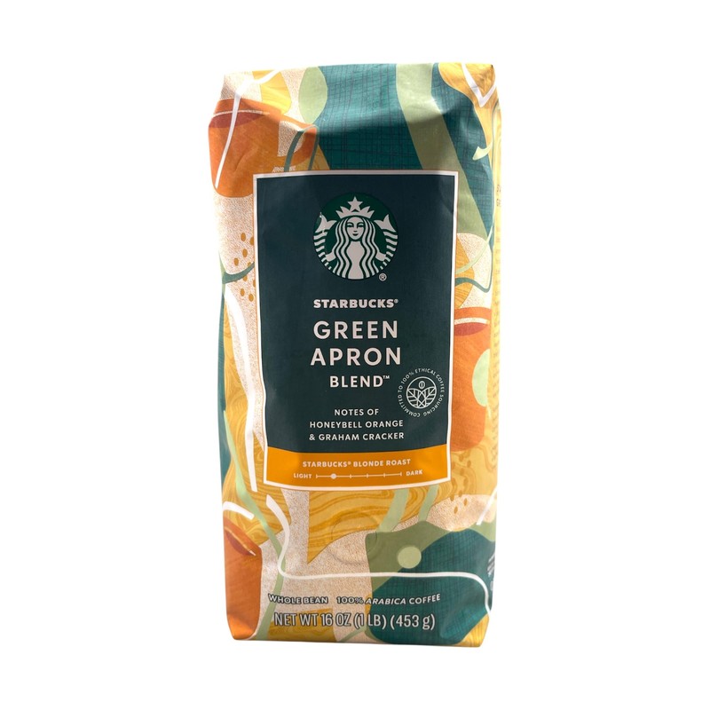 Starbucks Green Apron Blend Blonde Roast Whole Bean Coffee, Honeybell Orange & Graham Cracker Notes, 16 oz