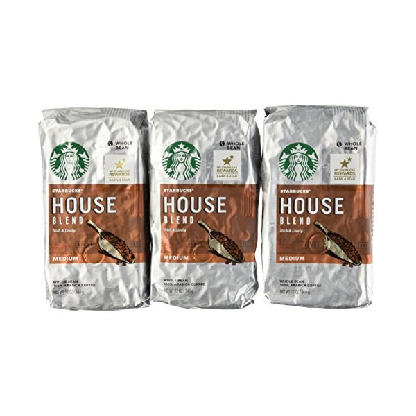 Starbucks House Blend Coffee, Whole Bean, 12-Ounce Bags (Pack of 3)