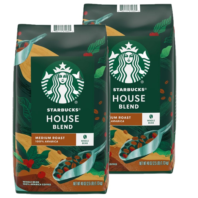 Starbucks House Blend Whole Bean Coffee (40 Ounce) (2 Pack), Brown