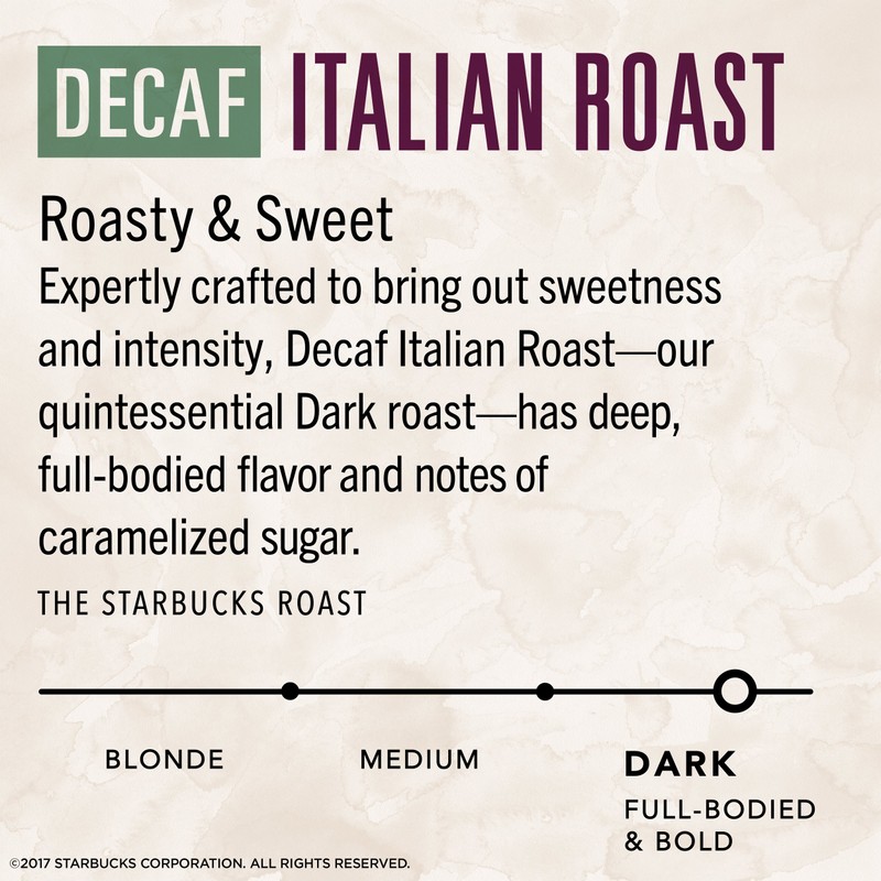 - Starbucks VIA Instant Decaf Italian Roast Coffee is roasty and sweet with a rich, deep flavor and notes of caramelized sugar