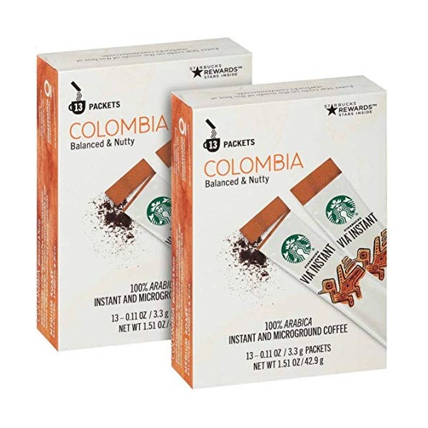 Starbucks Via Instant Medium Roast Colombia Coffee, 26 Count (Pack of 2)