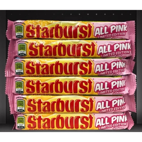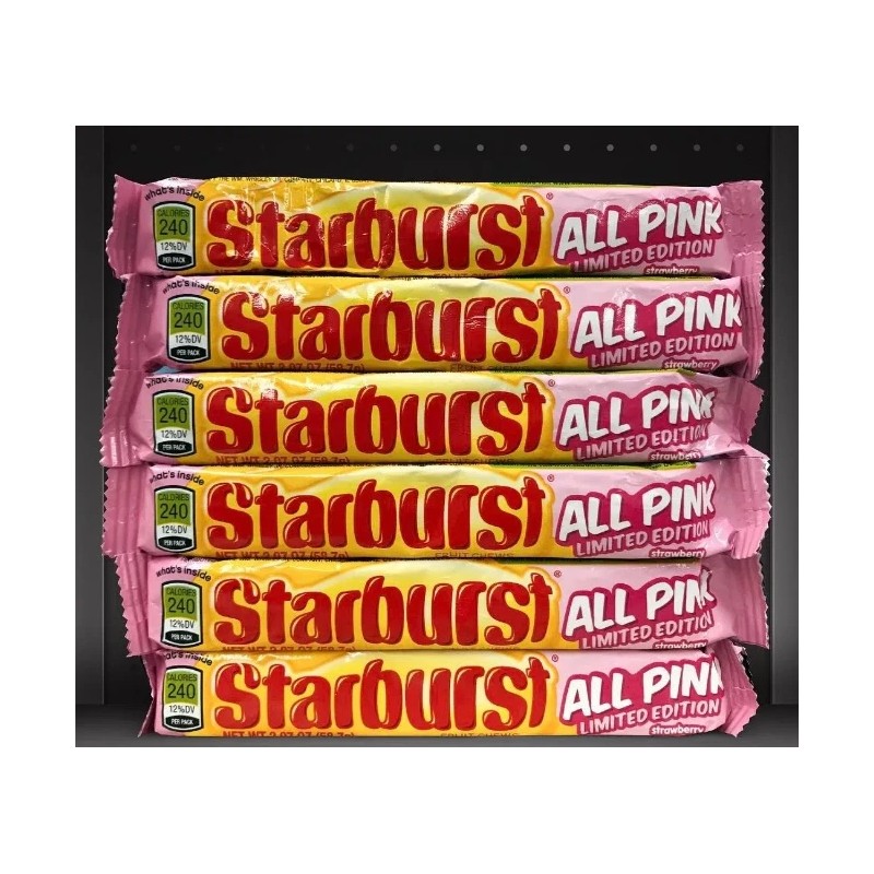 Each delivery contains 6 juicy packs of Pink Starburst Fruit Chews Candy.