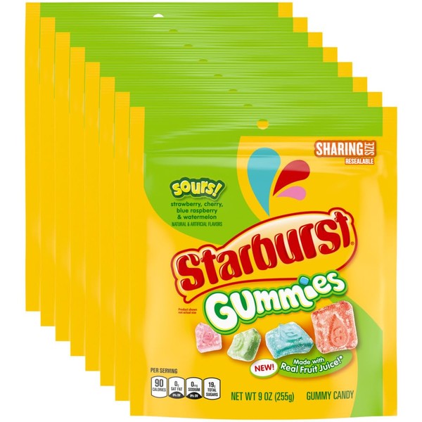 - Contains eight (8) 9-ounce bags of STARBURST Gummies Sours Gummy Candy