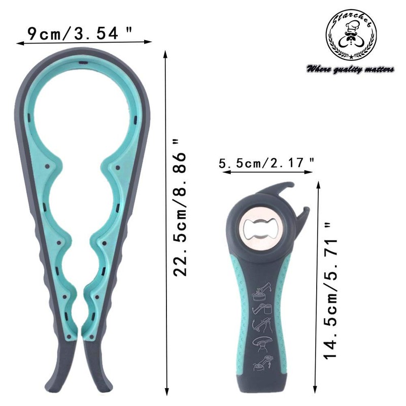 • PERFECT COMBINATION-This set consists of a jar opener with multi-sizes circles,a 5 in 1 beer opener and an anti-slip jar opening pad.With this set,you can easily solve open a jar,a can or a bottle which you can hardly open even with all your strength.