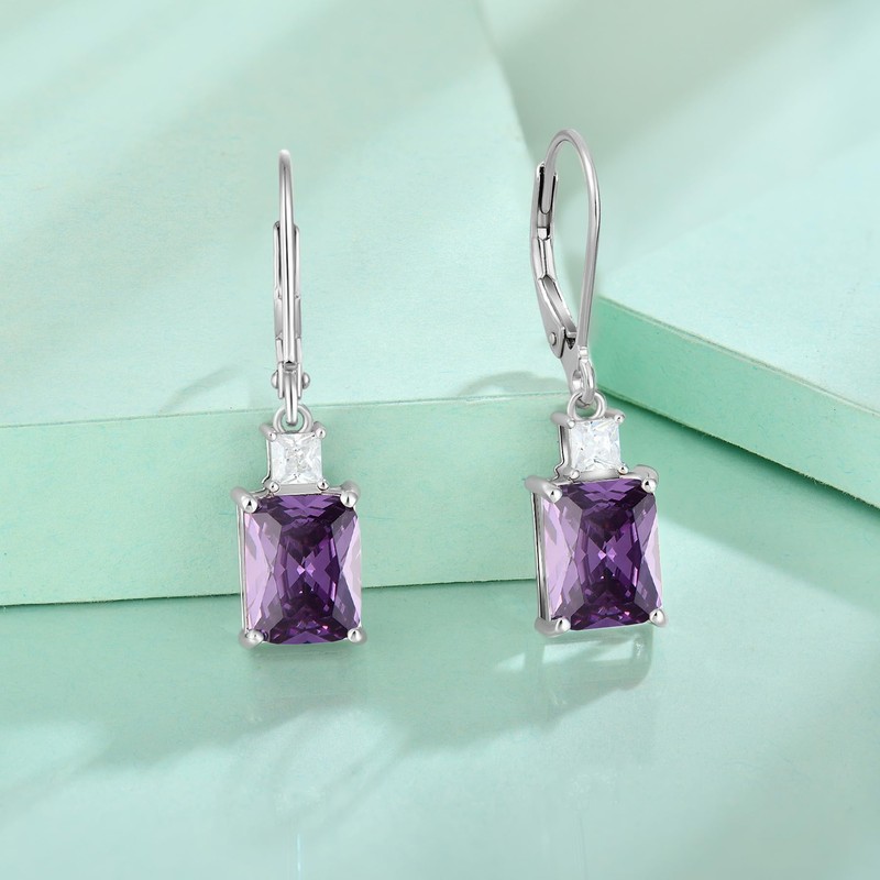 Starchenie 925 Sterling Silver Earring Birthstone Amethyst Cubic Zirconia Dangle Leverback Earrings Jewellery Gifts for Women