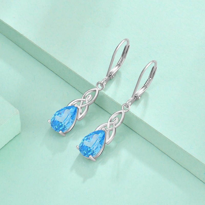 Starchenie Celtic Knot Leverback Earrings 925 Sterling Silver Dangle Drop Earrings for Women March Birthstone Created Aquamarine Jewelry
