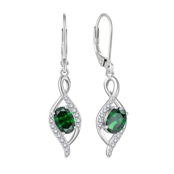 Starchenie Infinity Dangle Drop Earrings 925 Sterling Silver Oval Birthstones Leverback Earrings May Emerald Jewelry Gift for Women