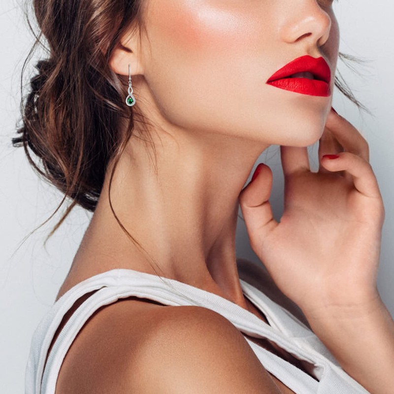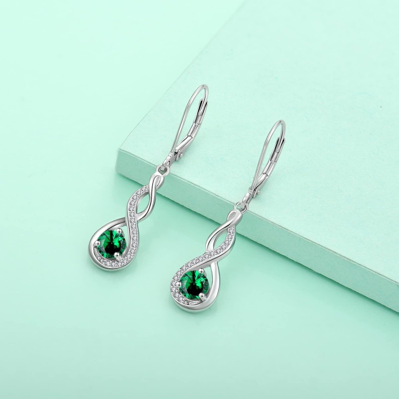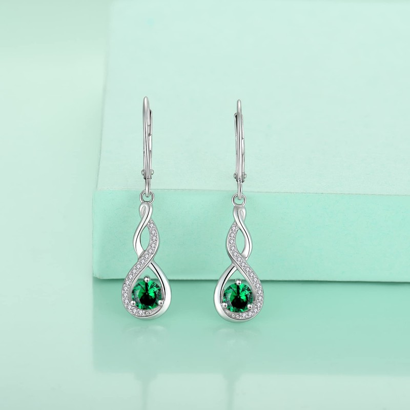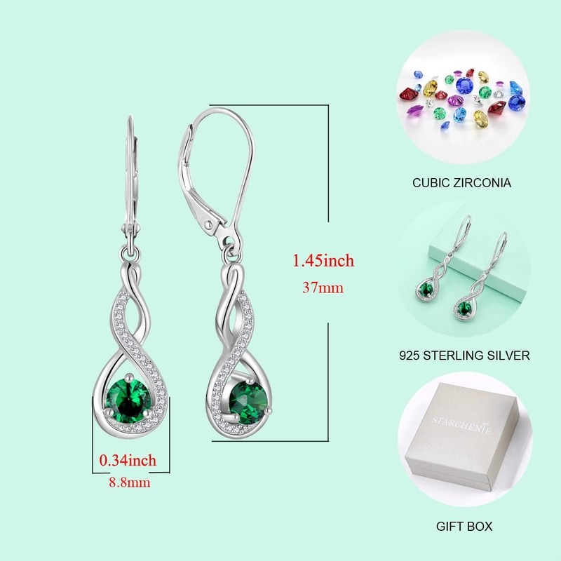 Starchenie Infinity Dangle Earrings Sterling Silver Twisted Leverback Earring Created Emerald Jewelry for Women