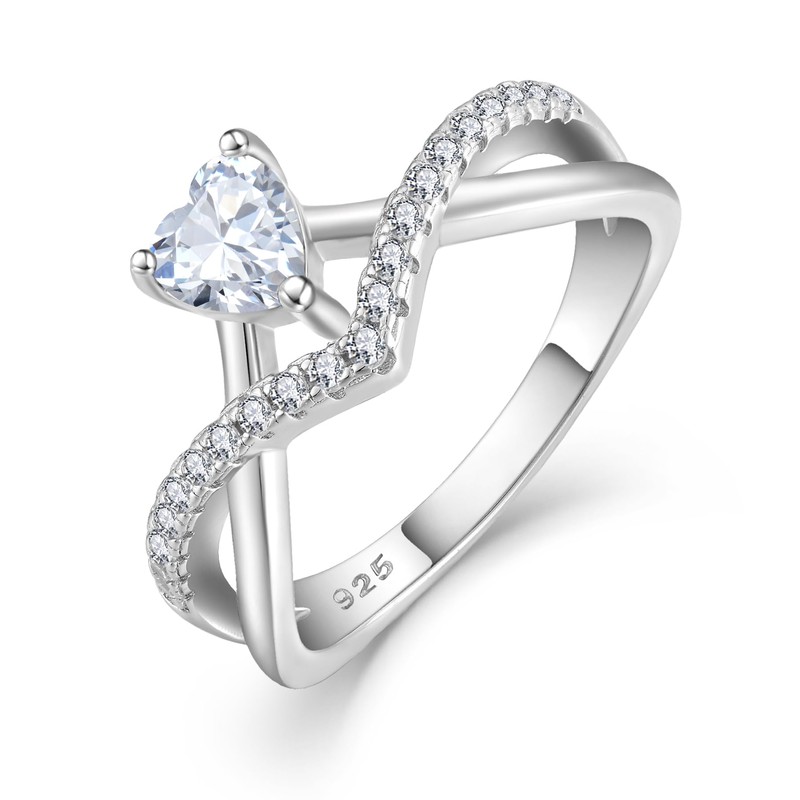 Starchenie Sterling Silver Heart Cubic Zirconia Rings for Women Twisted Wedding Engagement Bands Jewelry