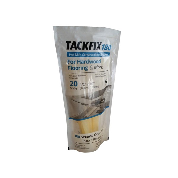 TACKFIX 180 Plyolefin-based hotmelt glue adhesive is used for wood flooring. Each pack of adhesive contains 20 sticks of glue adhesive.