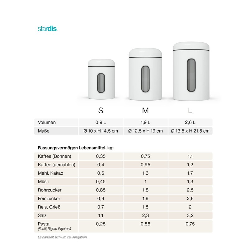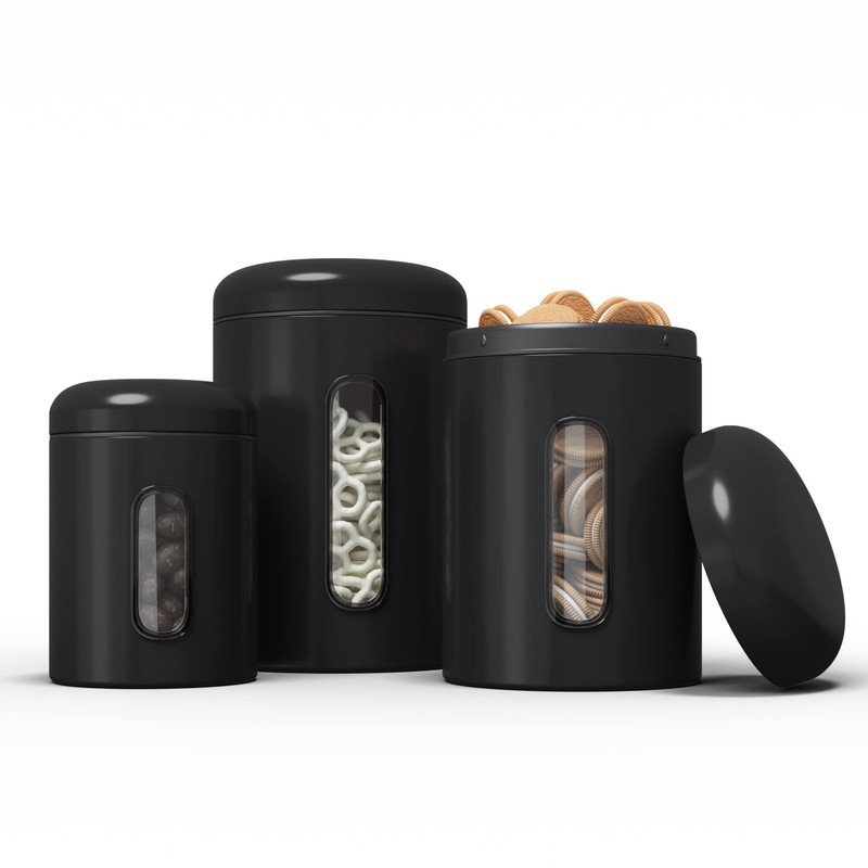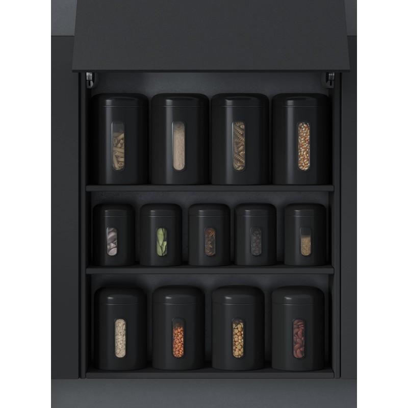 stardis Storage Jars Set of 3 0.9 L with Lid and Viewing Window for Food, Sturdy Storage Container, Metal Containers for Coffee, Tea, Cereals, Coffee Canister, Anti-Fingerprint Coating, Black