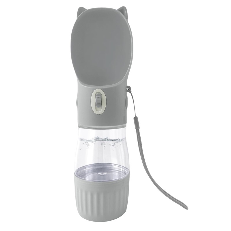 STARFIELD Pet Water Bottle Pet Dog Leak Proof Portable with Carabiner One-Touch Water Supply Shock Resistant Walking Water Bottle Water Bottle (240ml with Bait), Gray)