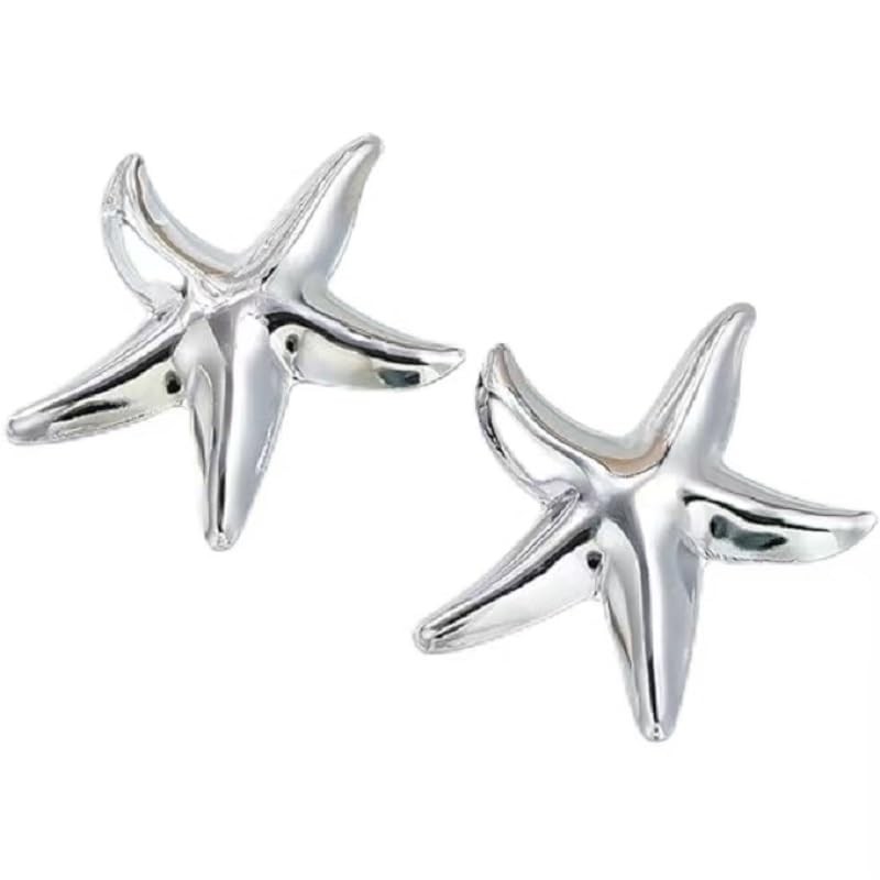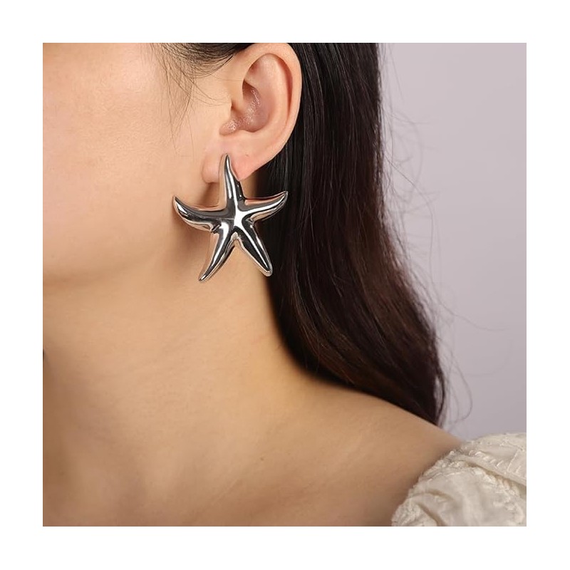 Starfish Earrings for Women Starfish Stud Earring Statement Big Starfish Earrings Bohemia Beach Surfer Starfish Earrings Beach Jewelry Accessories (Silver, One size)