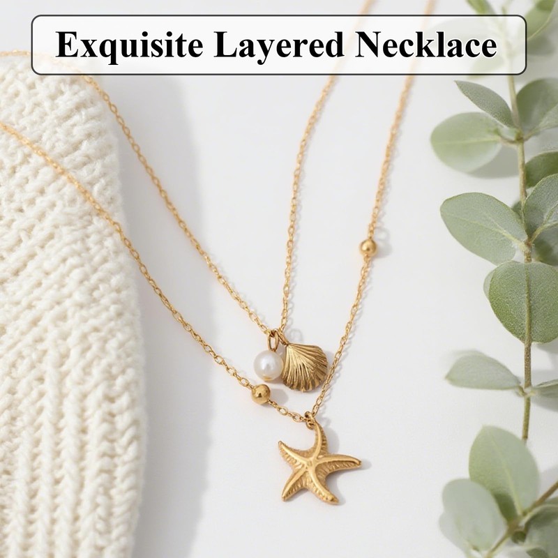 - 【Unique Design】Starfish and shells are cleverly combined into a necklace gold, which is rich in layers, smart and unique, easily brightening the neck line, adding marine style and fashion to your outfit