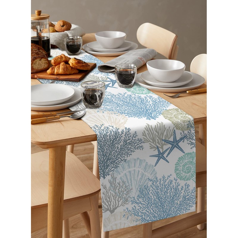 Starfish Ocean Coral Shell Table Runner Kitchen Dining Table Runners 72 Inches Long, Cotton Linens Washable Table Cloth Dresser Scarves for Party Wedding Birthday, 13" Wide Geometric Tablerunners