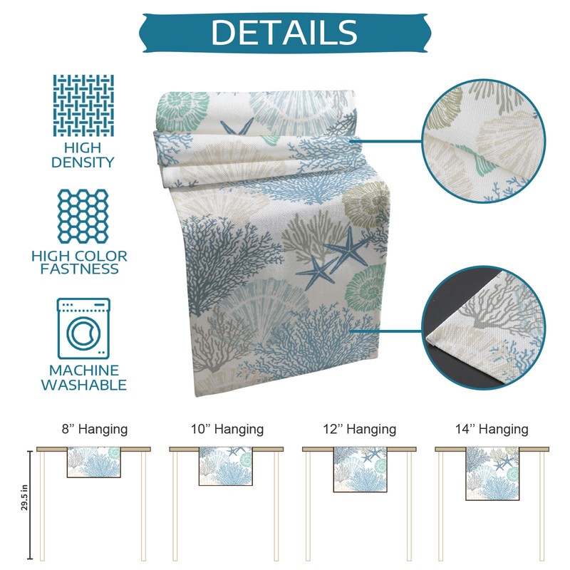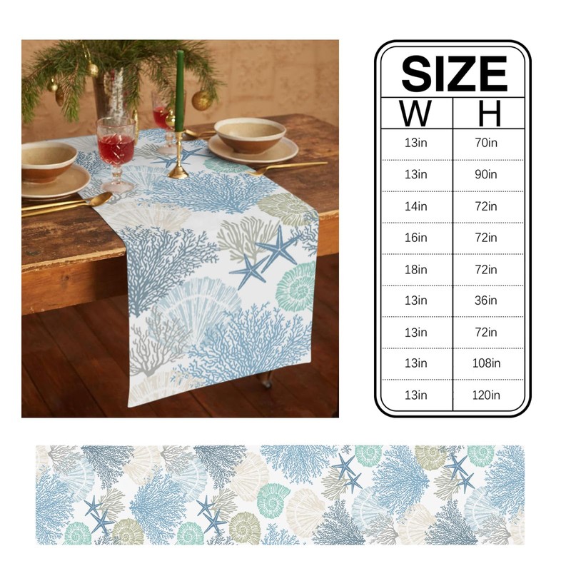 Starfish Ocean Coral Shell Table Runner Kitchen Dining Table Runners 72 Inches Long, Cotton Linens Washable Table Cloth Dresser Scarves for Party Wedding Birthday, 13" Wide Geometric Tablerunners