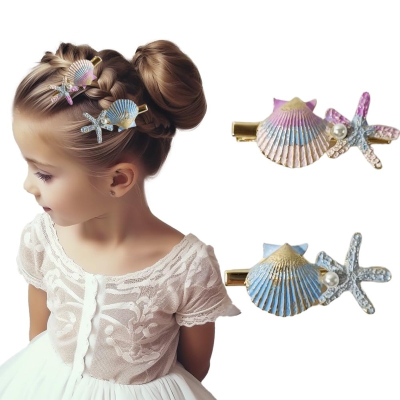 Starfish Seashell Hair Clips Sea Star Ponytail Holder Wedding Headpiece Hair Accessories For Women Girls, Bride, Bridesmaid (Style1-2Pcs)