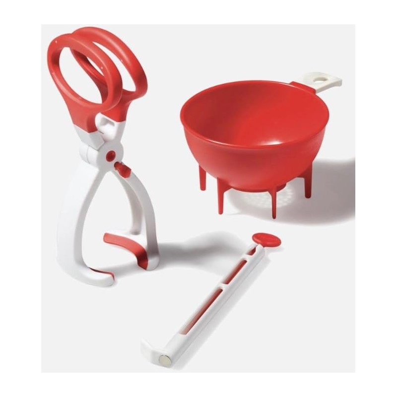 - THIS ALL-IN-ONE KIT INCLUDES: Multi-Size Funnel, Jar Lifter, Lid Lifter/Bubble Popper, And Multitool Jar Cap Opener, Scooper - Everything You Need For Effortless Canning!