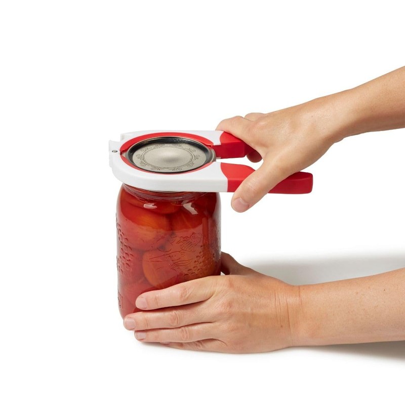 - EASY-GRIP JAR LIFTER: Spring-loaded for one-handed grip and release. The non-slip lifter provides a better hold on hot jars and is free-standing on flat surfaces. MULTIFACETED MULTITOOL: Designed to easily open lids of all sizes with non-slip handles for a firm grip. The seal popper effortlessly breaks off lid seals using light pressure
