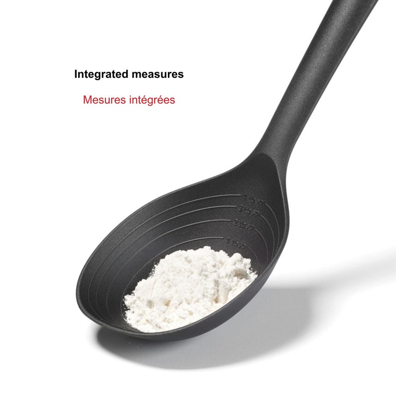 - The Starfrit spoon features 4 integrated measures and a flat edge for multifunctional use.