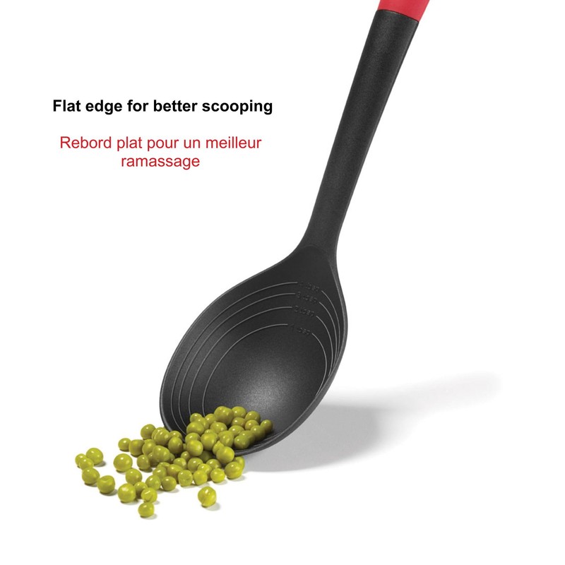 Starfrit Nylon Spoon with 4 Integrated Measures - Flat Edge for Better Scooping - Won't Scratch Cookware- Non-Slip Handle - Heat Resistant - Dishwasher Safe