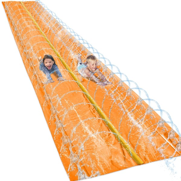- DUAL LANE SLIP AND SLIDE: This vibrant, 18 x 5 feet, dual-lane water slide features bright, eye-catching colors, this dual-lane water slide offers hours of slippery fun for outdoor enjoyment.