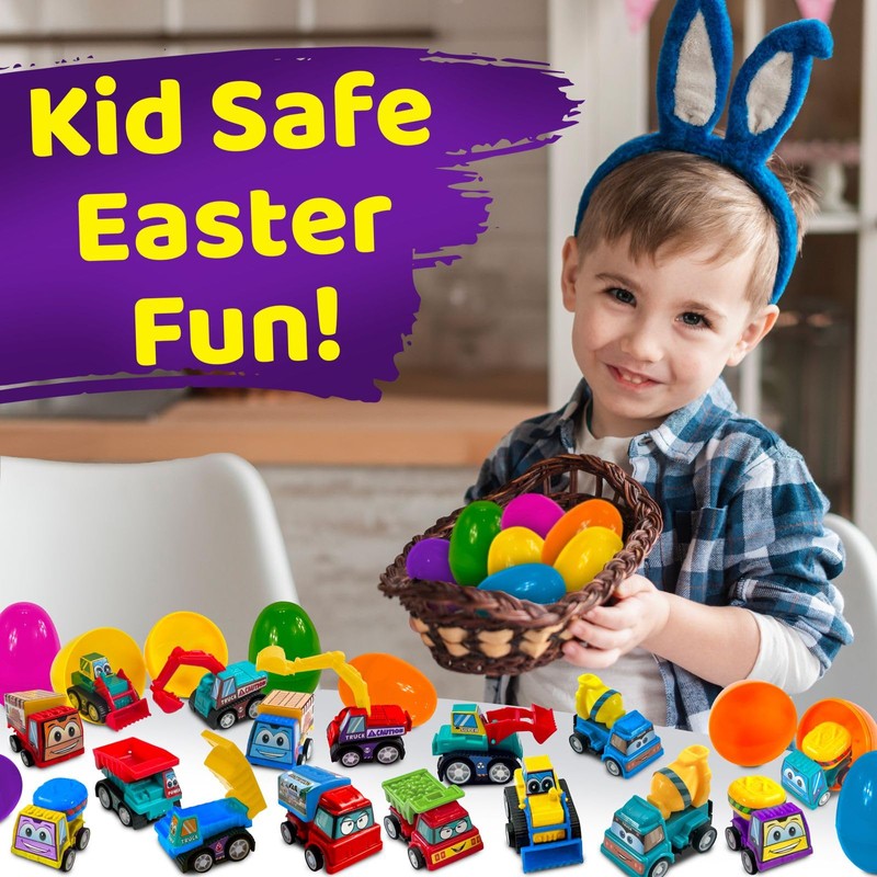 - Ready to Use: Skip the prep work! These Easter eggs filled with pullback construction cars are pre-stuffed and ready to hide, making Easter egg hunts easy and stress-free. Add them to any Easter basket for a fun and exciting surprise.