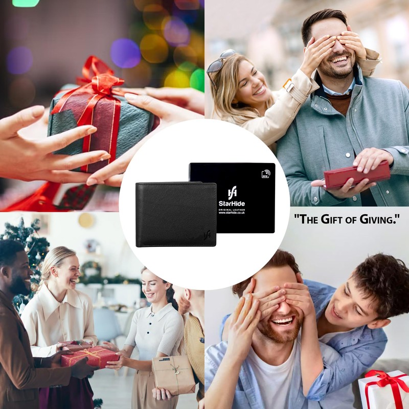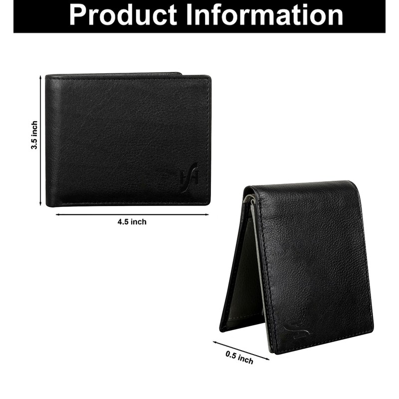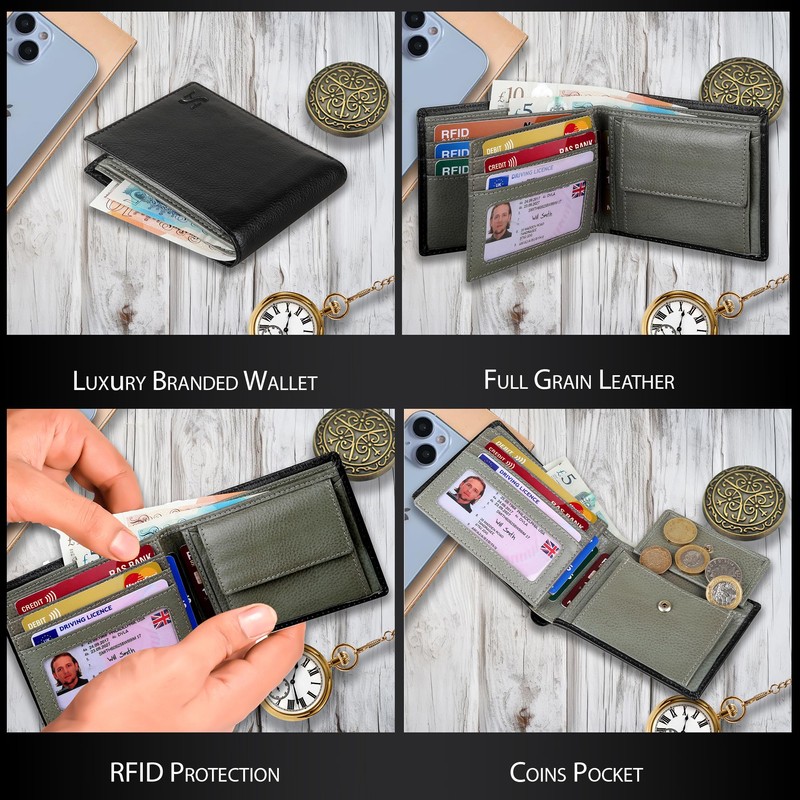 StarHide Mens RFID Blocking Wallet High Quality Soft Real Leather With ID Window & Coin Pocket Tri-fold Wallet With Gift Box - 1216 (Black Green)