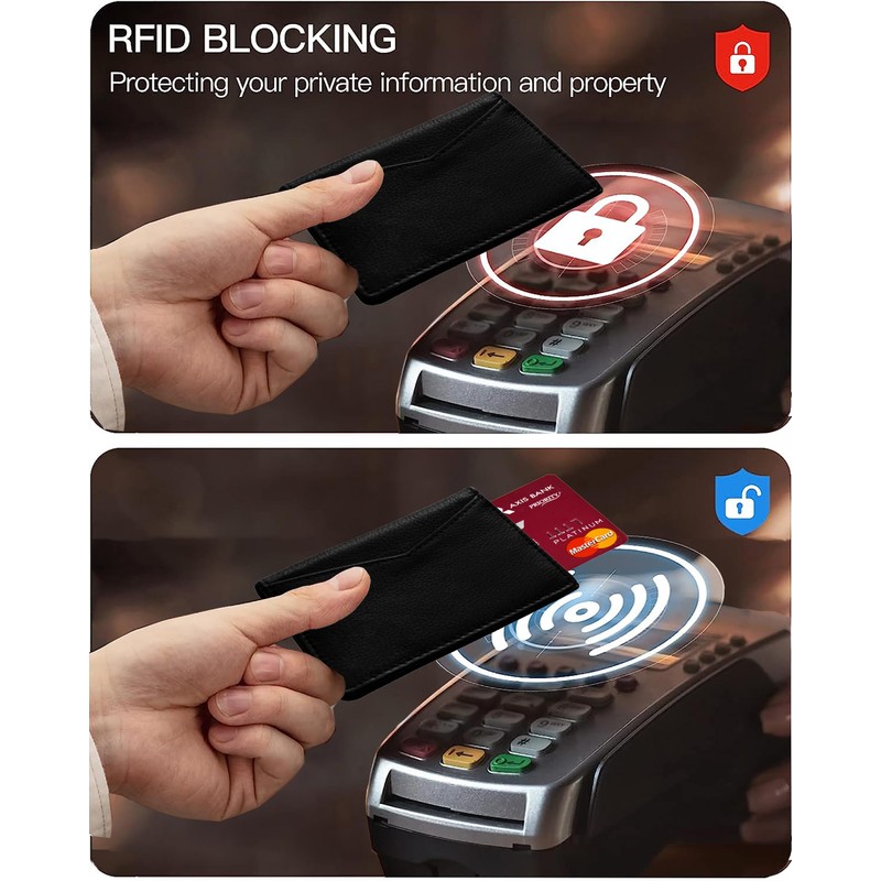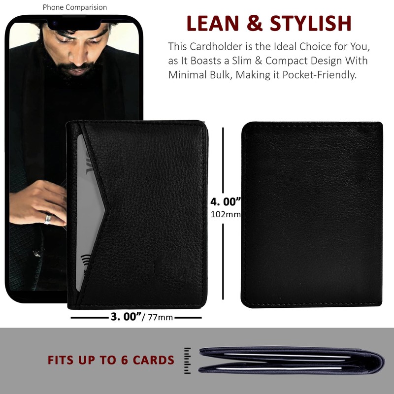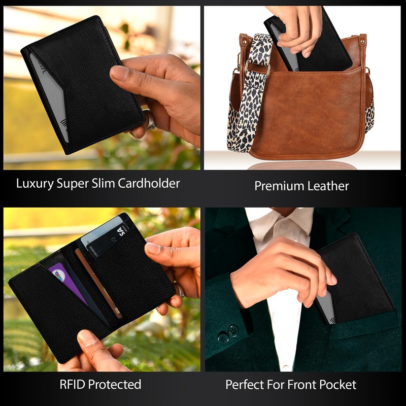 - SUPERIOR LEATHER QUALITY: Elevate your daily essentials with our RFID-Blocking Cardholder, made from premium top-grain leather, including 100% full-grain leather known for its durability and refined dual-tone finish. A soft polyester lining enhances the luxurious feel.