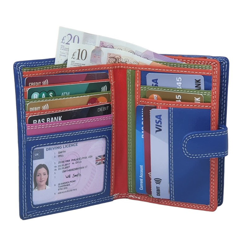 STARHIDE Womens RFID Blocking Compact Soft Leather Multi Coloured Purse with Zip Around Coin Pouch 5535 (Blue Multi)
