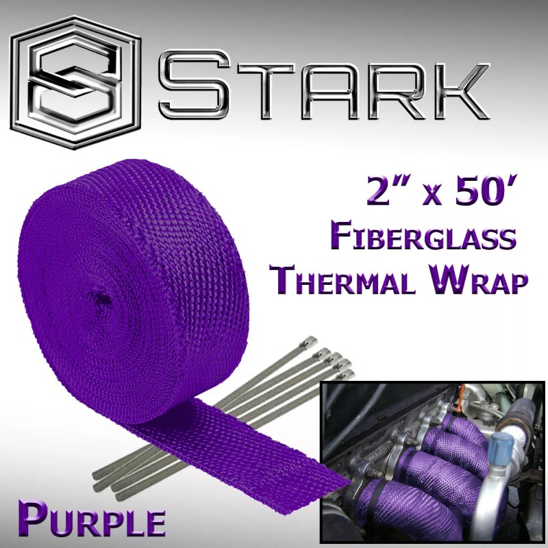 Stark (2-Pack) 2"x50ft Exhaust Fiberglass Heat Wrap Tape w/ 5 Steel Ties - Purple (I)