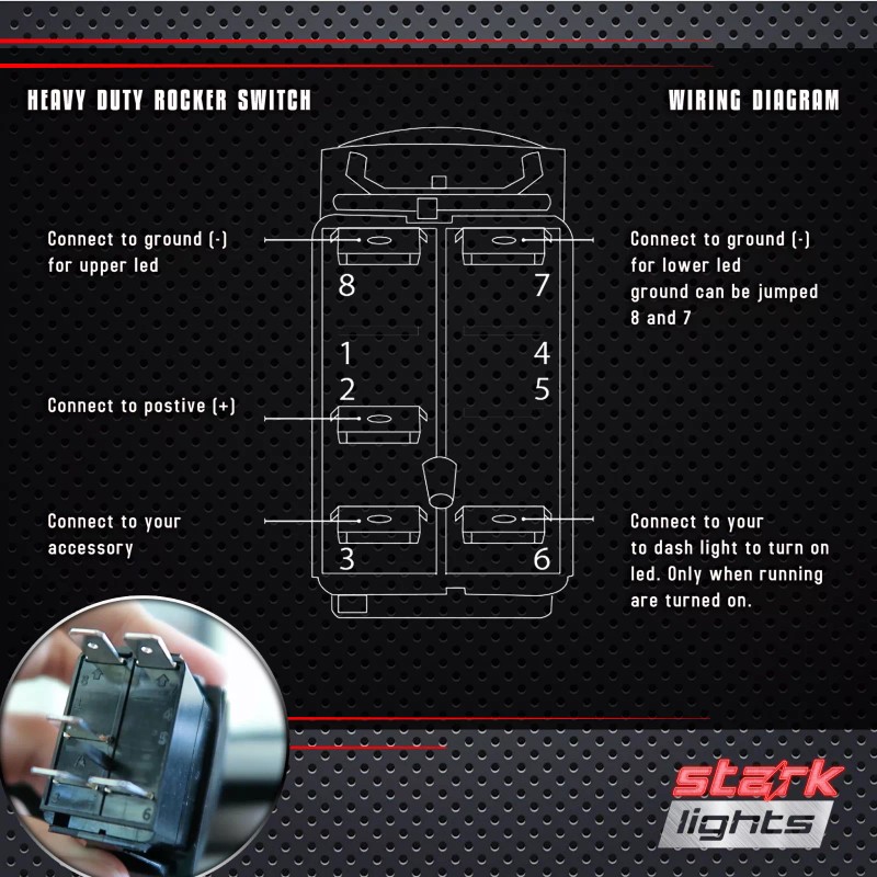 LED Rocker Switch 5-Pin 20 Amp 12 Volt - On / Off LED Rocker Switch Provides simple On and Off function for various applications. All symbols are laser etched directly onto the switch face to ensure long image life. We have many designs to accommodate Cars, Trucks, SUV, Jeeps, Boat, Tracker, and many more! Get your LED Rocker Switch today! Specs: