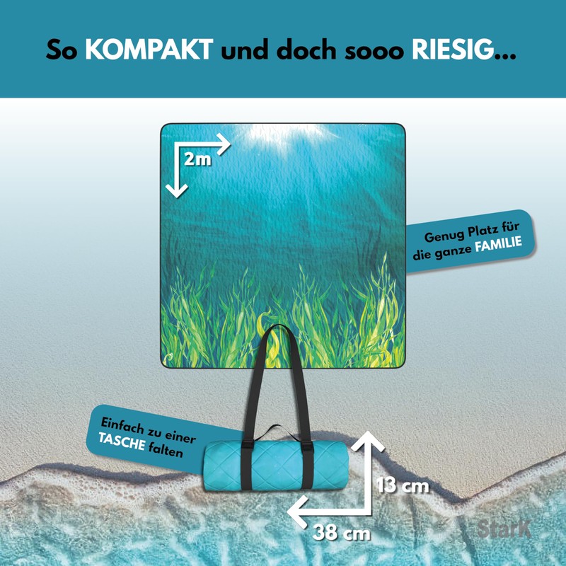StarK® Ocean Picnic Blanket, 200 x 200 cm, Waterproof, 3-Layer Beach Blanket, Sand-Free, No Seams, Washable Beach Mat, Padded (Ocean)