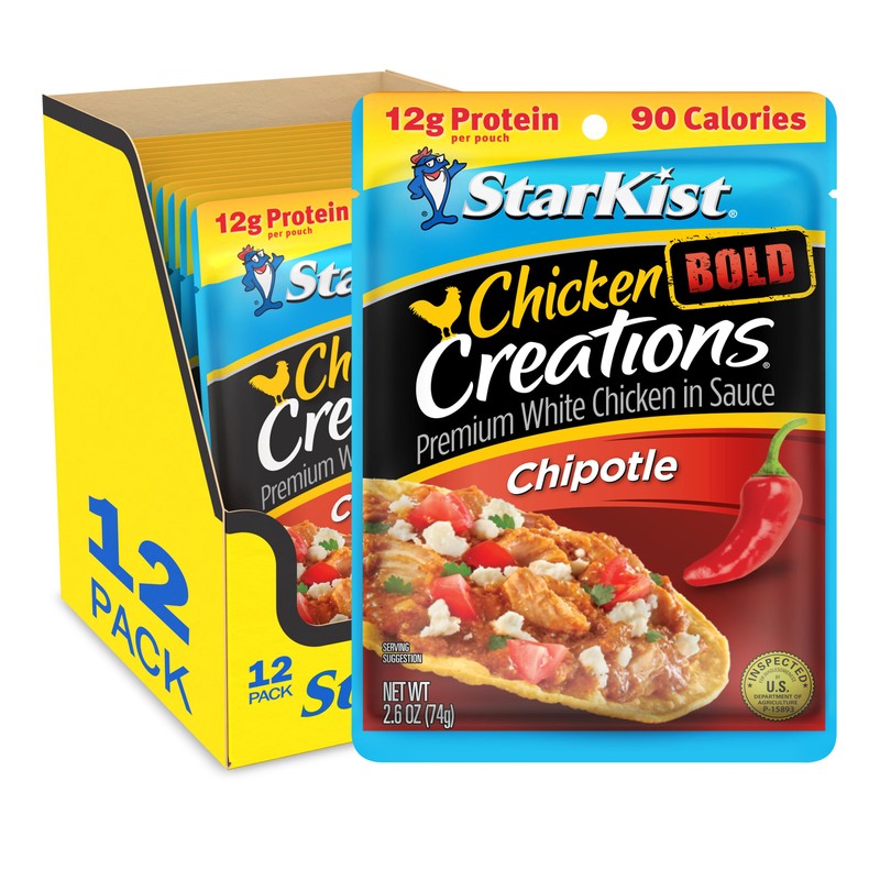 StarKist Chicken Creations BOLD Chipotle Pouch (2.6 oz - 12 Pack) Fully Cooked High Protein White Meat, No Draining, Ready to Eat for Salad and Sandwiches