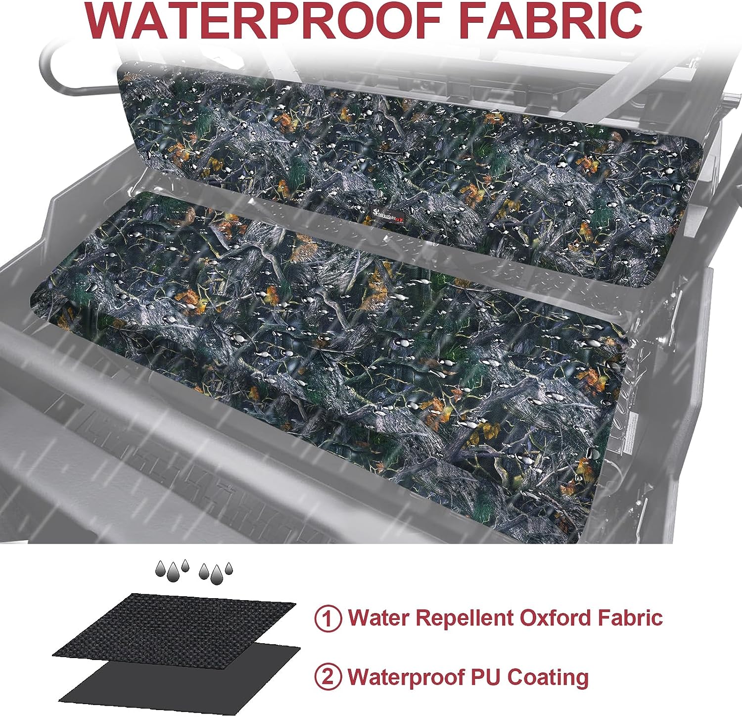 - 【Waterproof Fabric】The UTV mule seat covers are made of heavy-duty 1680D fabric and waterproof PU lining, which can defend against rain, water and mud. Besides, 1680D has better weather and abrasion protection than 600D and 900D fabric, it will serve for your seats a longer term than others