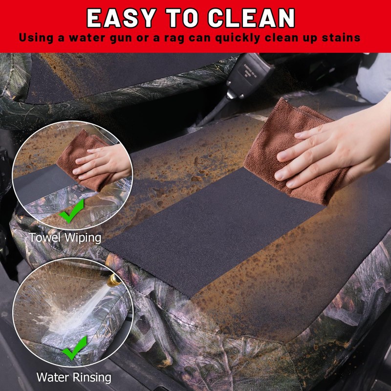 - MORE COMFORTABLE MATERIAL: The UTV camo pioneer seat cover is made of breathable neoprene fabric, which features great weather, and abrasion protection. Unlike nylon seat cover, StarknightMT Upgrade Neoprene seat cover won't stick to skin when it's hot or after a workout, and is more comfortable than ordinary Oxford seat covers 4pcs