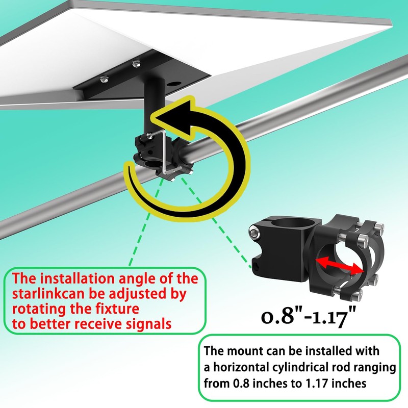 - - **Enhanced Safety Features**: Our Starlink mounting kit incorporates precision-machined aluminum clamps for double protection against accidental slipping or loosening. The integrated design of the Starlink pipe adapter and mount enhances stability and reliability during installation.