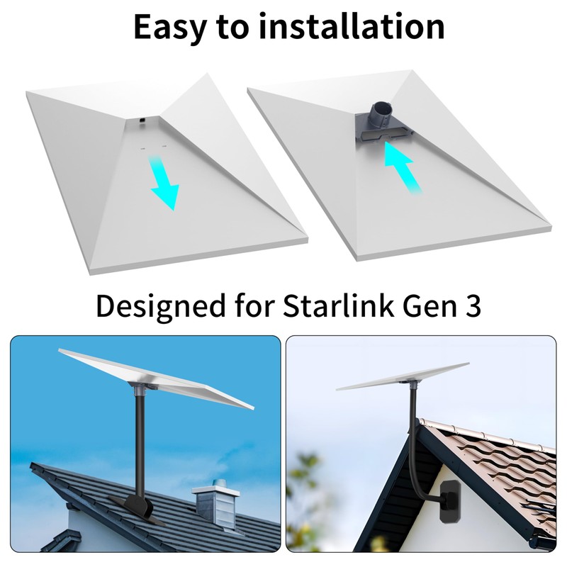 - Wide range of applications: Starlink pole mount gen 3 can be used in a wide range of locations. The Starlink 3 can be mounted on a roof with a pople , rv mount roof mount even boats mount, using the pipe adapter, with a 360° swivel and a 20° tilt angle, which allows it to be adjusted to different positions depending on the signal reception.