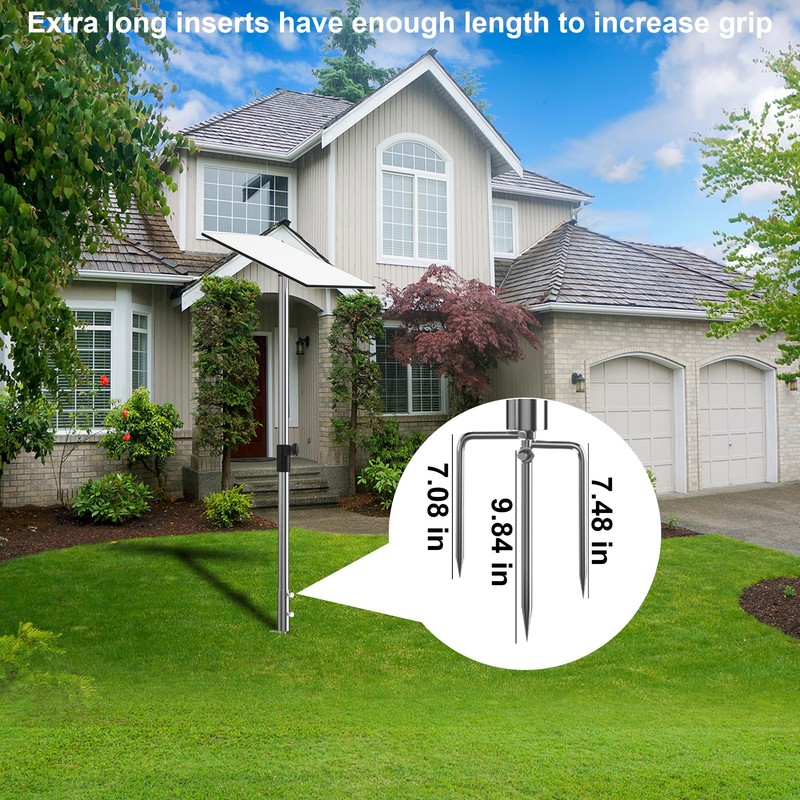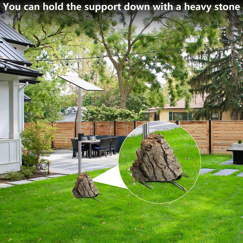 • Two installation methods: 1: Insert the triangular bracket into the ground, suitable for home gardens or outdoor lawns 2: Rotate the triangular bracket to one side according to the instructions to install it so that the bracket is in an L shape. The bottom can be pressed with a counterweight