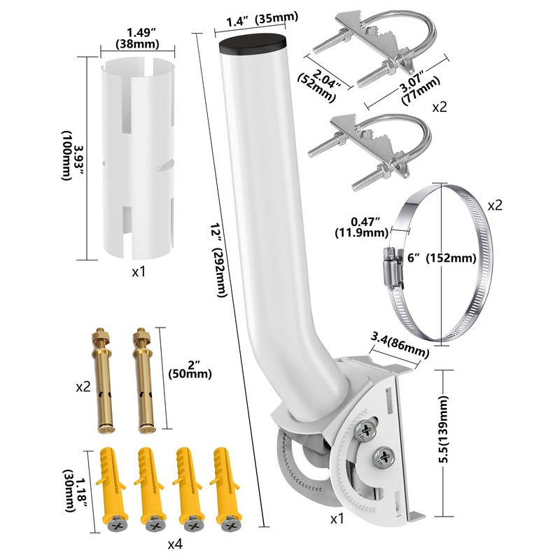 - ❄ Corrosion and Rust Resistance: The pole mount bracket is meticulously crafted with a sleek white surface, offering corrosion, rust, abrasion, and weather resistance. This design ensures reliable protection and extends the lifespan of Starlink devices.