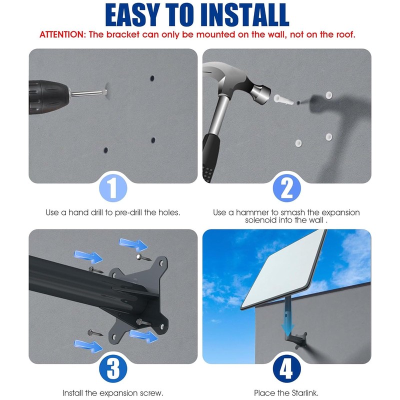 4. WIDE APPLICATIONS: For Starlink mounting kit is versatile and suitable for installation on eaves and a variety of surfaces such as wood, brick and concrete wall. Provides flexibility in finding the best location and positioning of the satellite dish.
