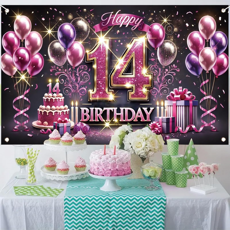 - Exquisite design: The Happy 14th Birthday Banner features vivid patterns printed with good digital resolution, including Tailored specifically for a 14th birthday, this design features stylish elements such as the large sparkling "14" and chic purple and pink tones, ideal for a teenager's milestone celebration.