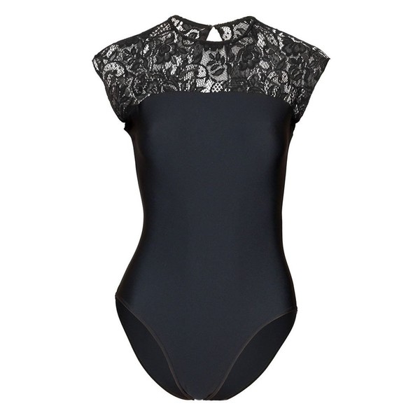- Cap sleeve leotard with stretch lace yoke