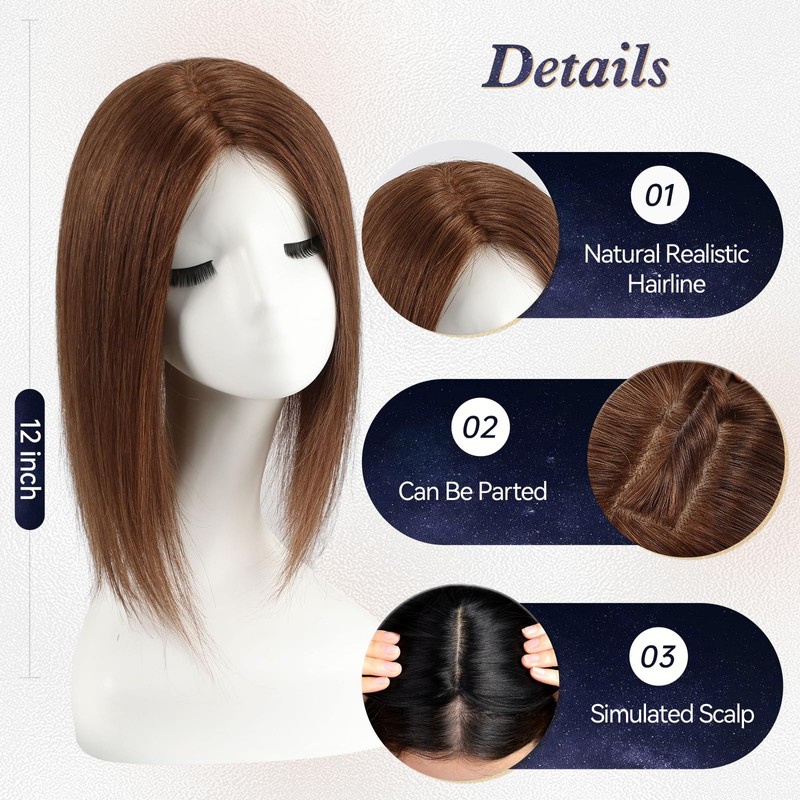 - 7*7 Inch Breathable Base, Comfortable and Secure Fit: Designed with a breathable mesh base, lightweight and comfortable for long-term wear without discomfort. The 7*7 inch size is ideal for covering large areas of hair loss, providing a secure and natural fit that stays in place