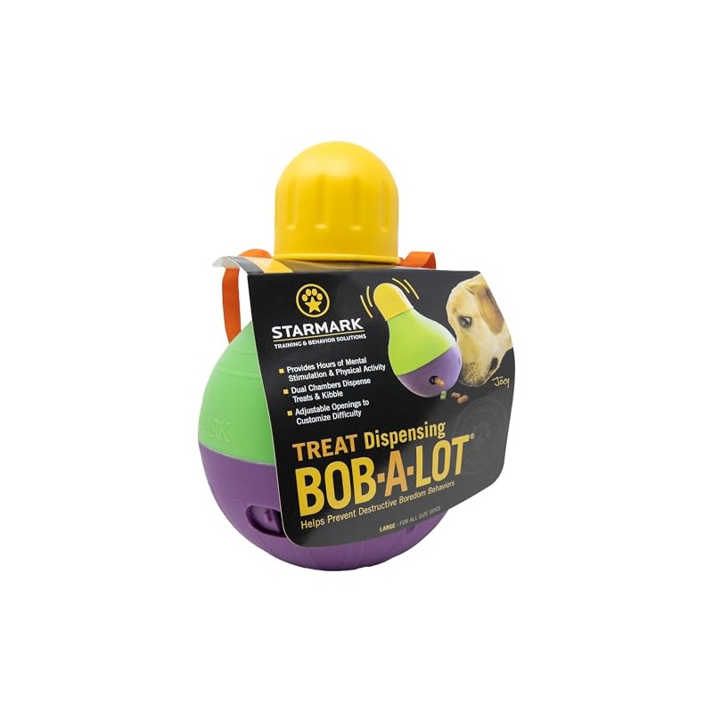 Starmark Starmark Bob-A-Lot Interactive Dog Pet Toy, Large, Yellow/Green/Purple